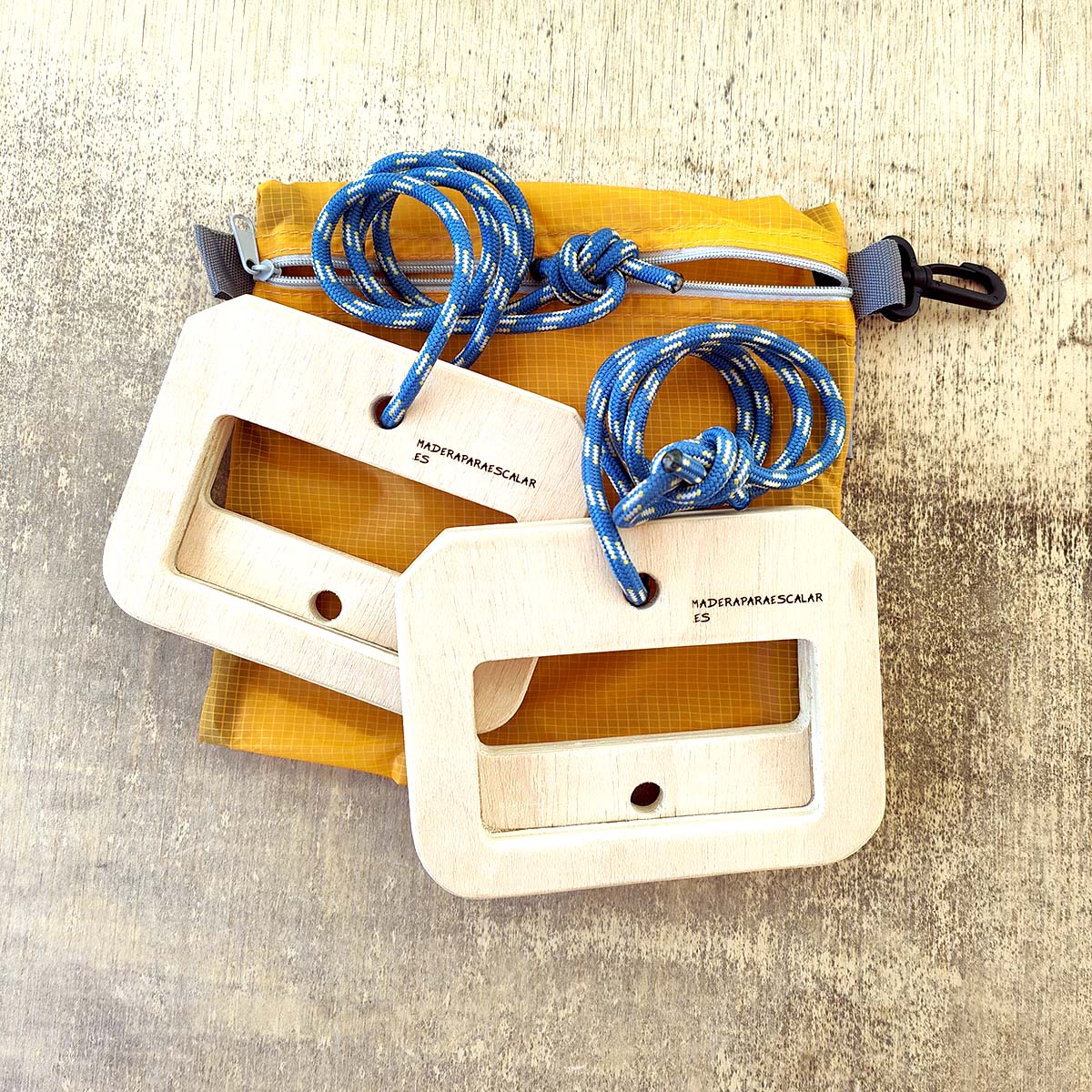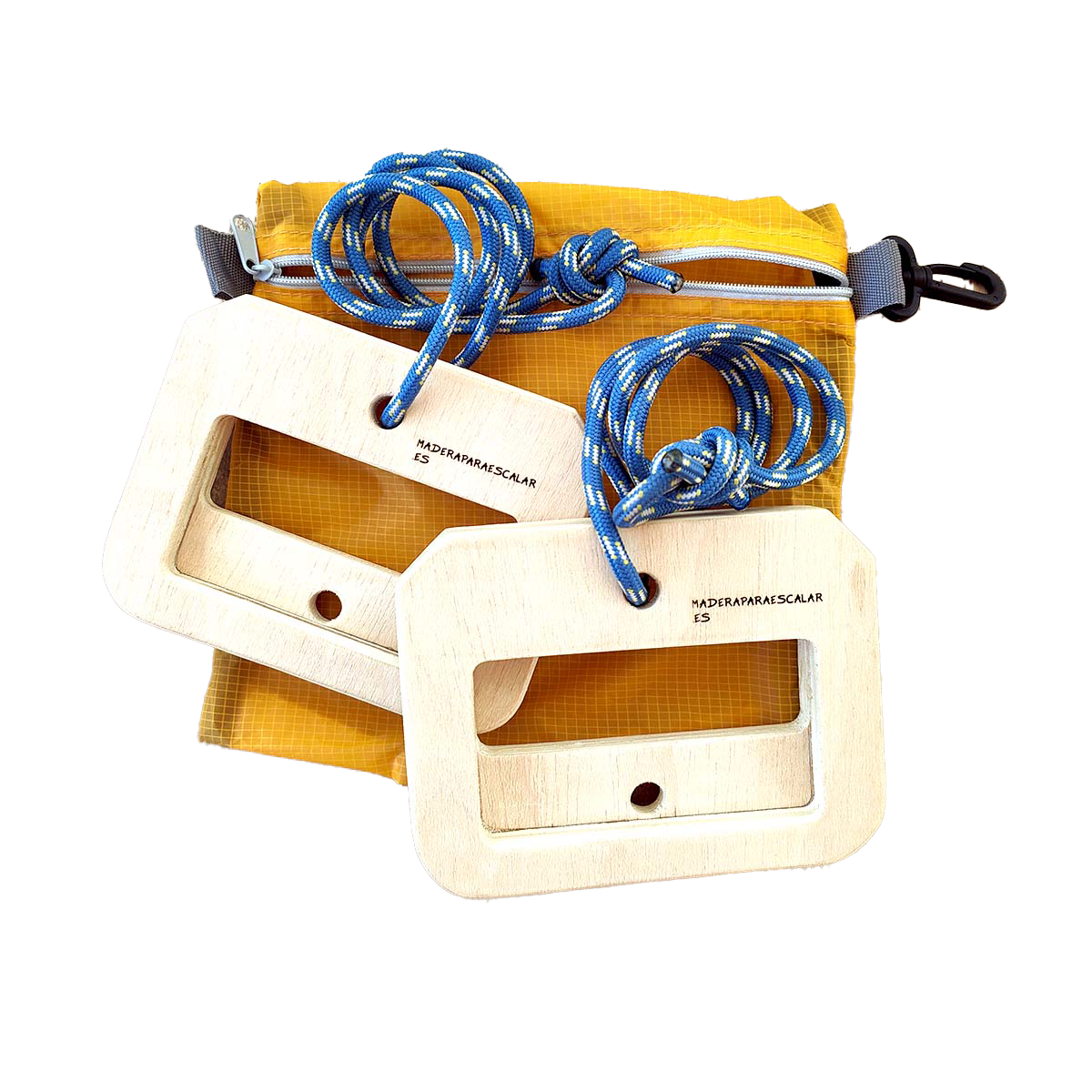 Presas de madera de reducido tamaño, ligeras, fáciles de llevar y perfectas para entrenar o calentar. Incluye dos presas de madera con cuerda y una bolsa de transporte.